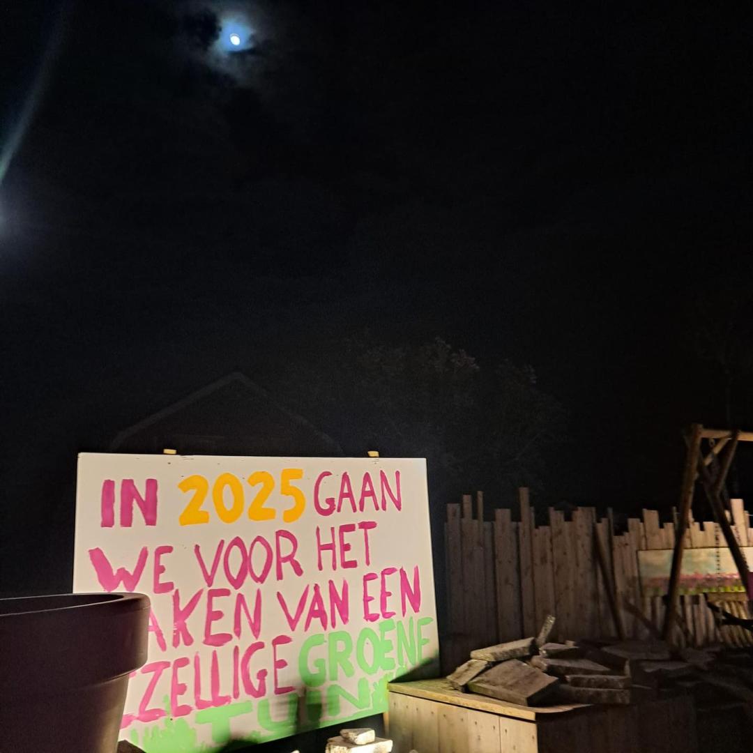 Een groene vol met bloemetjes terras-tuin te maken. Hoop was 2025 maar dan nu toch eindelijk gestart in begin 2026.